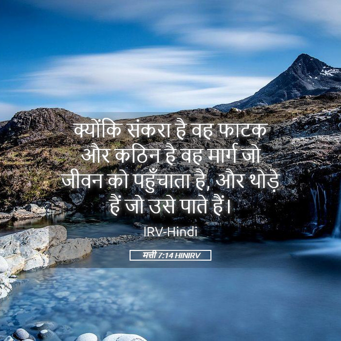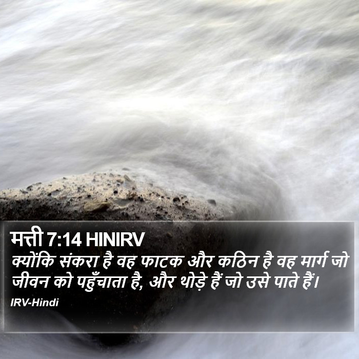 "क्योंकि संकीर्ण है वह द्वार और कठिन है वह मार्ग, जो जीवन को पहुँचाता है, और उसके पाने वाले थोड़े हैं।"