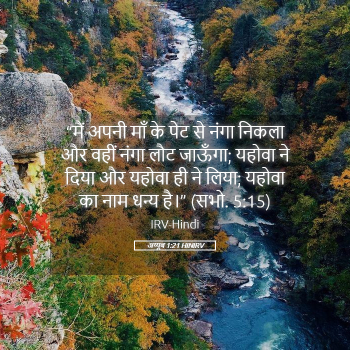 "और कहा, जैसा मैं अपनी माँ के गर्भ से नंगा निकला, वैसा ही नंगा वहाँ लौट जाऊँगा: यहोवा ने दिया, और यहोवा ने ही लिया; यहोवा का नाम धन्य हो।"