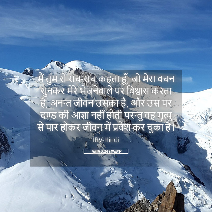 यूहन्ना 5:24 – "मैं तुमसे सच कहता हूँ, जो मेरा वचन सुनता है और मेरे भेजने वाले पर विश्वास करता है, उसके पास अनंत जीवन है, और वह दोषारोपण में नहीं आएगा, परंतु मृत्यु से जीवन में पार हो गया है।"