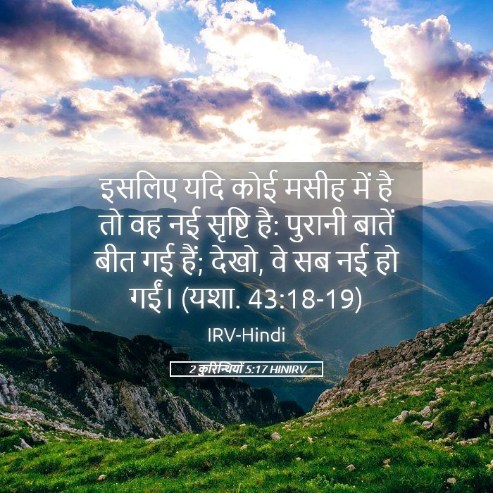 2 कुरिन्थियों 5:17 – "इसलिए यदि कोई मसीह में है, तो वह नई सृष्टि है; पुरानी बातें बीत गईं; देखो, सब कुछ नया हो गया।"