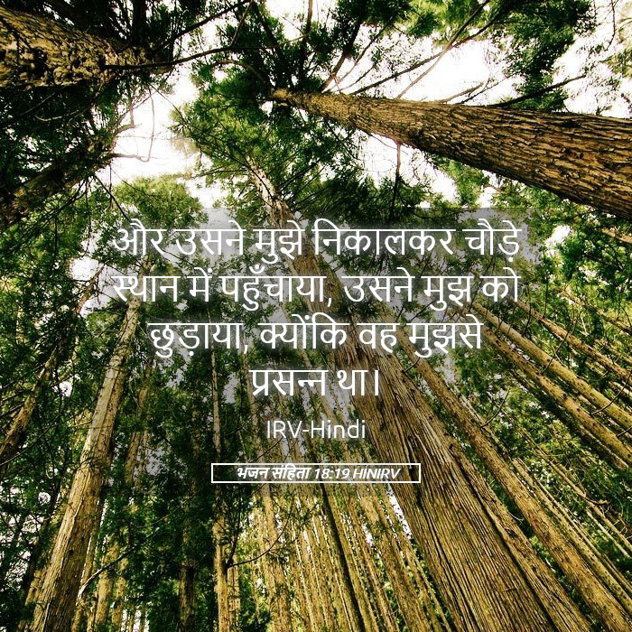 "वह मुझे भी चौड़े स्थान में ले आया; उसने मुझे छुड़ाया, क्योंकि उसे मुझ में प्रसन्नता थी।"